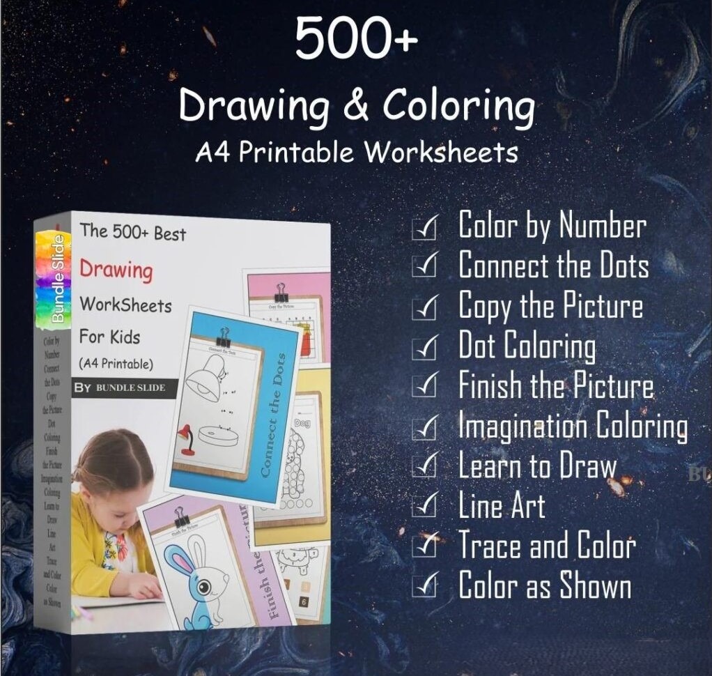 The bundle is designed for ages 2–13 years. It includes activities for toddlers, preschool, nursery, LKG, and UKG levels, so it grows with your child.
